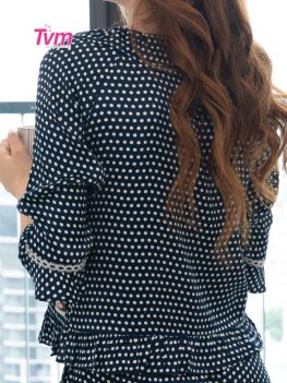 Áo tay lỡ kết hợp bèo và ren trang trí, lai áo có bảng bèo